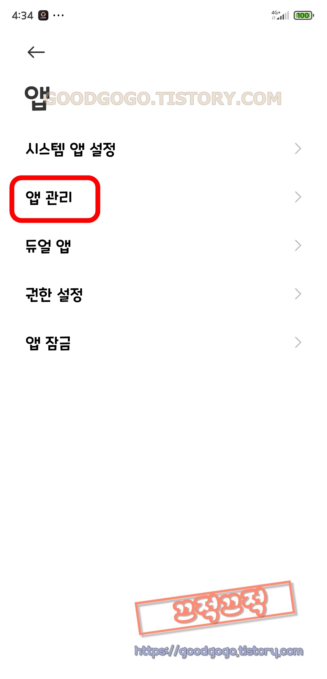 앱관리로 들어 갑니다