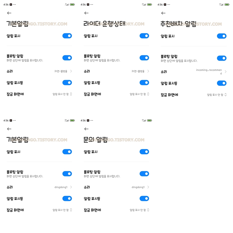 그리고 하단에 보이는 알림들 들어가서 소리가 꺼진 것들을 다 켜줍니다
