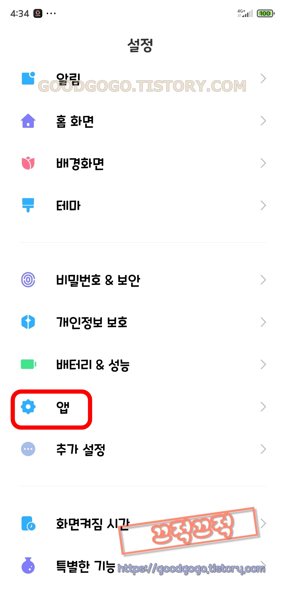 암튼 설정에서 앱을 선택
